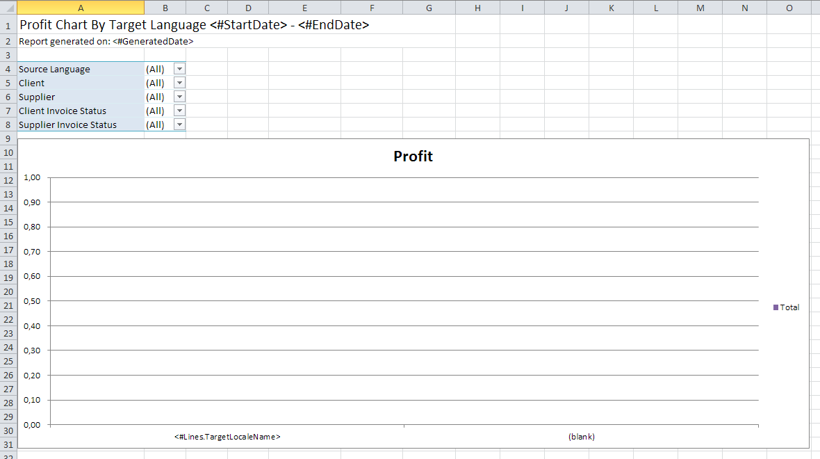 This report tells how much money you earn per project, per client as well as per source and target language. It includes charts and pivot tables.