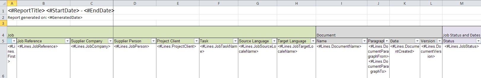 | <#Lines.JobCreationDate> | The date when the job was created in the system. This is a native Excel date. |