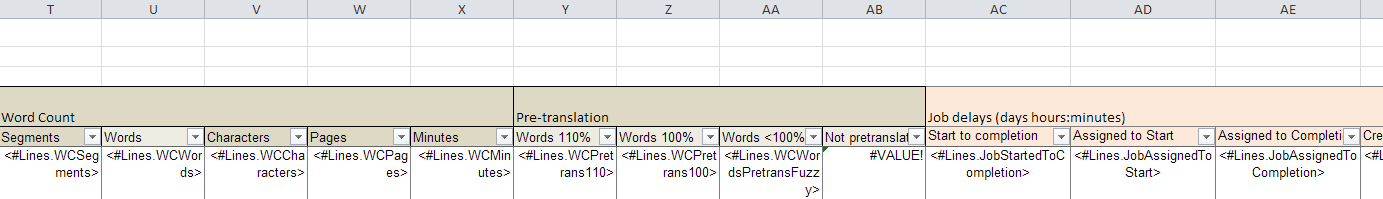 | <#Lines.WCWordsPretransFuzzy> | Total words of fuzzy (< 100%) pre-translations. |