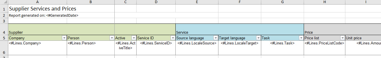 Each row in the report corresponds to a supplier service. In other words, all information of a specific supplier service will be contained in one single row.