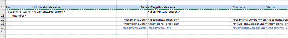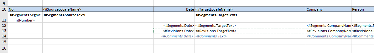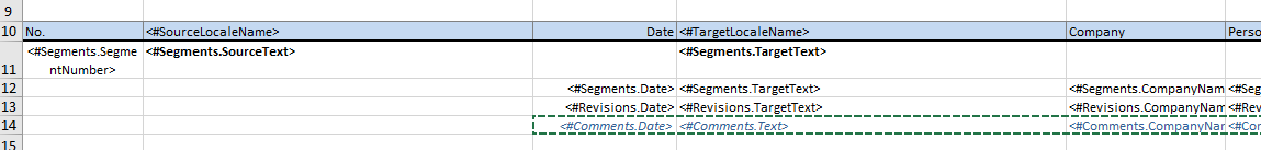 <#Segments.Date> | Date of last change of translation. When using this field make sure to set the Excel cell format to "Date" |