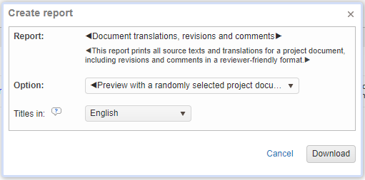 When creating a report from My Company > Reports, it will select a random document. Therefore, we advise you to test your report directly from the Translation Editor.