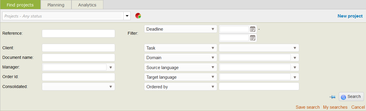 Wordbee provides an efficient search tool that enables you to easily find a project, a client or a supplier in your Wordbee workspace.