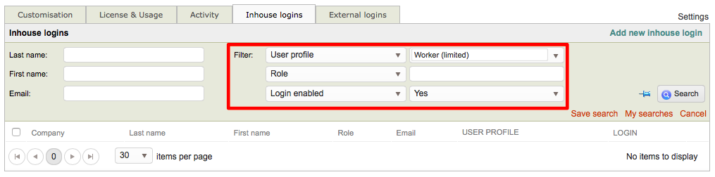 Searching for Inhouse Logins