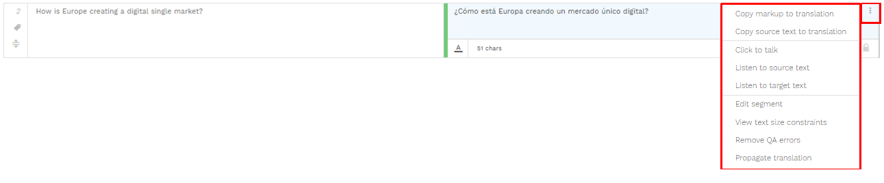 These are the features available when inside a segment of your target language.