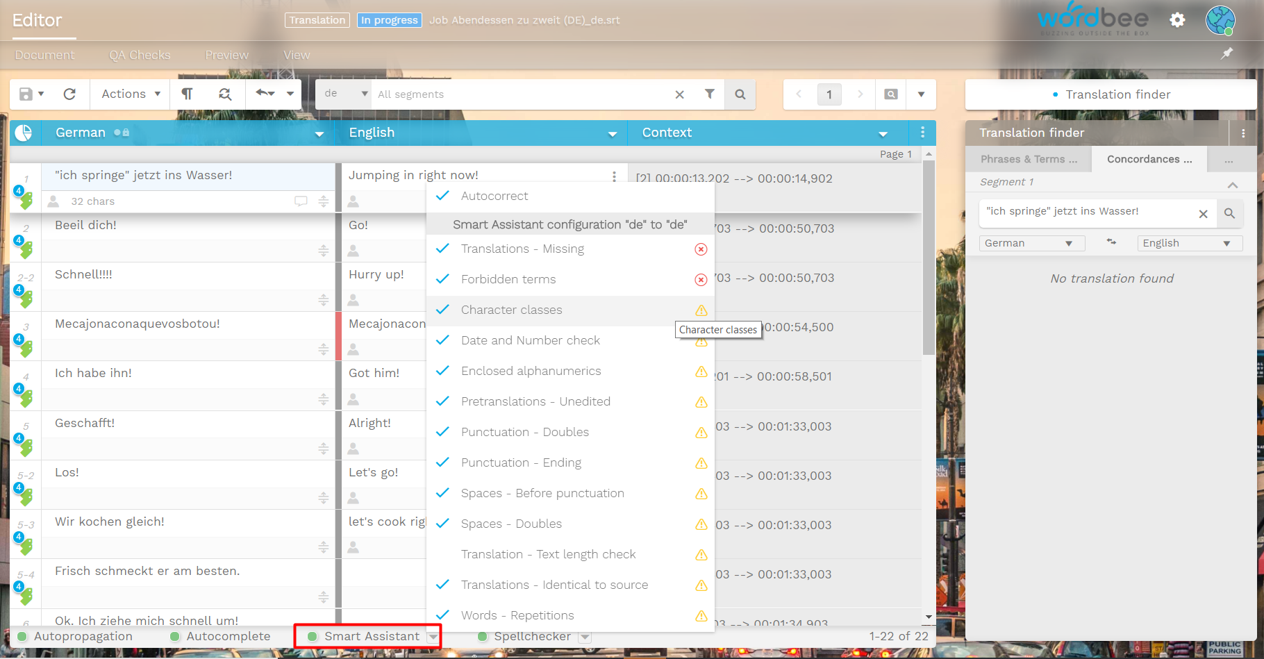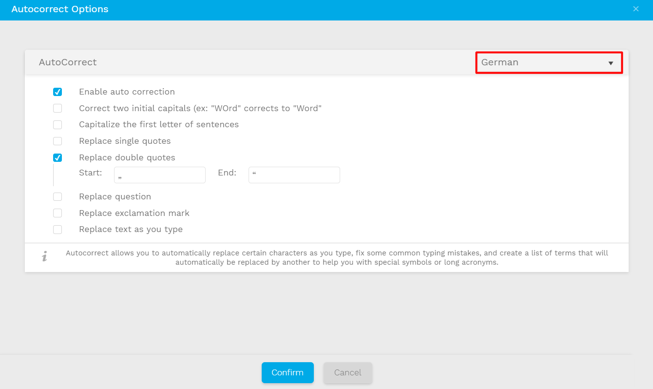 We know that focusing on the content can sometimes be very exhausting so we have equipped our Translation Editor with a feature that allows you to detect and auto correct any possible typos you may produce while writing.