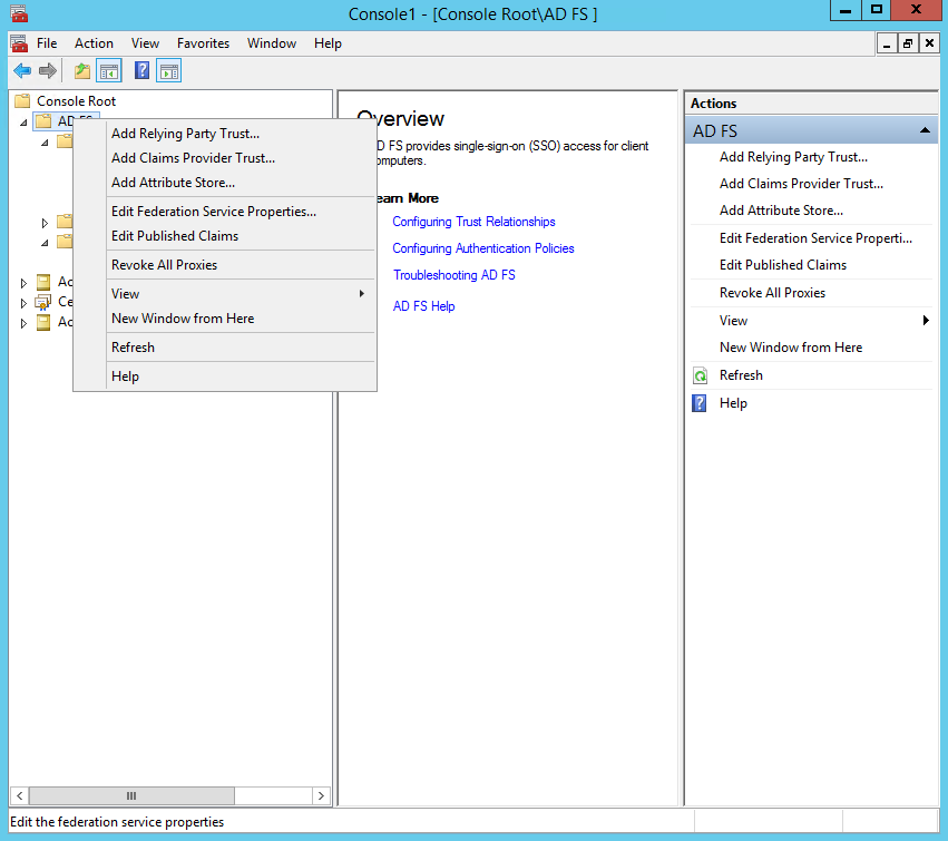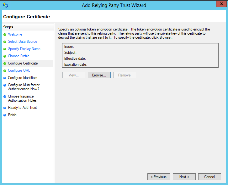 All steps are done using the ADFS configuration manager. Note that the screens for Azure AD are different:
