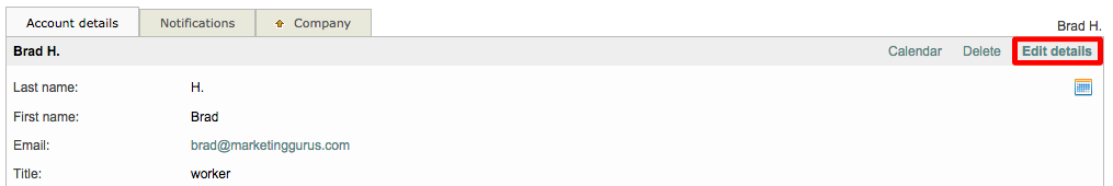 To view the login information for a specific user or to make changes to their information, click on Select to the right of their name. Then click on Edit Details in the upper right corner of the screen. Once all changes have been made, click on Save to finish.