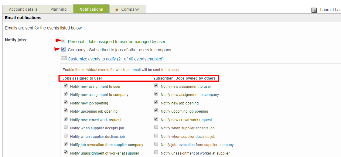 Depending on the user profile of the user and the number of logins available per supplier company, you will have to follow-up the emails sent to your colleagues and other team members or you will just focus on what is assigned to you. Working as a freelance translator (one single license used) you should configure personal and company events at once.