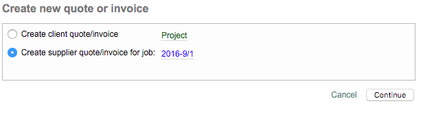 Then tick the radial next to Create supplier quote/invoice for job and click on Continue.