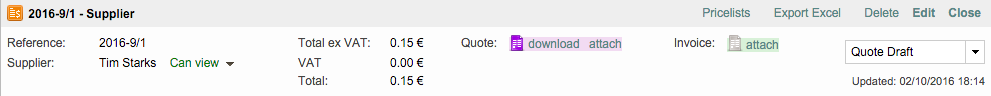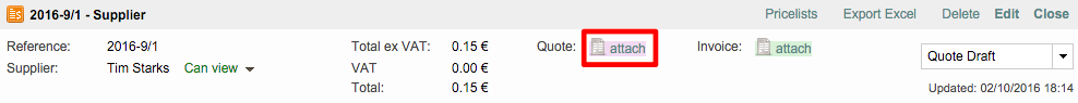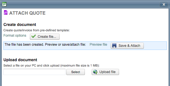 If everything within the quote draft is correct, you will need to attach it to the project. This can be done by clicking on Attach next to Quote in the pop-up window.
