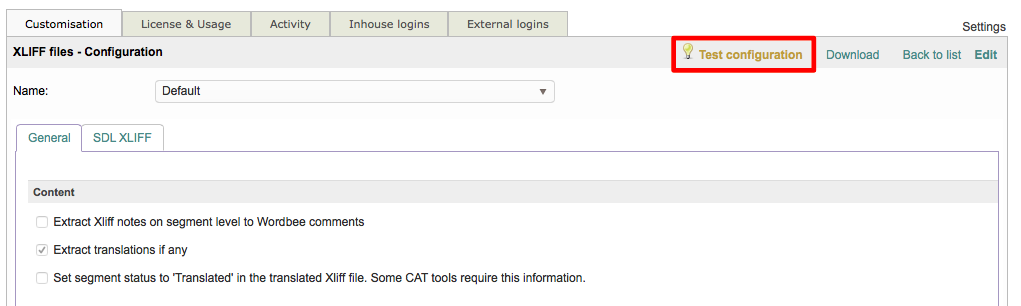Once the configuration has been saved, you can test the configuration with a file of the appropriate format. Then if the test is successful, you will still need to validate your configuration by using it in a project and reconstructing the target file. Only this way you will be sure that all the contents of your original file will be kept in the target one (this means all translatable and not translatable contents).