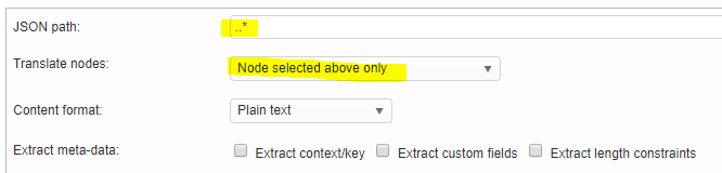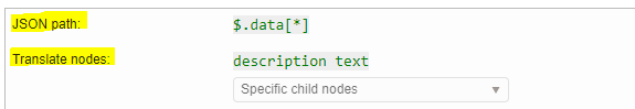 The [*] means that we want to select every element of the “data” array. Then we specify the nodes in each array object we want to translate.