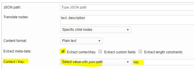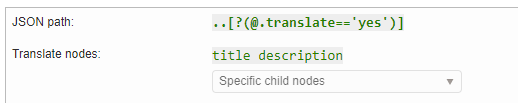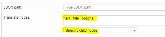 In this example, we want to translate the “text”, “title” and “options” node but not all the other ones such as the “key”.