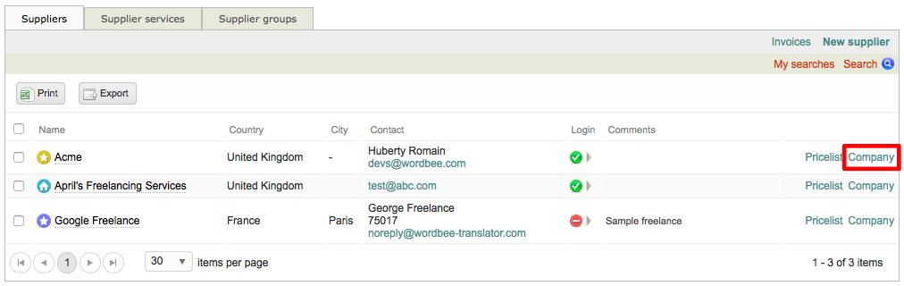 Then click on Company to the right of the supplier you want to use for configuring Translation Domains.