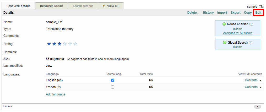 Finally, click on Edit and select or deselect the appropriate Translation Domains on the Resource Details Tab.