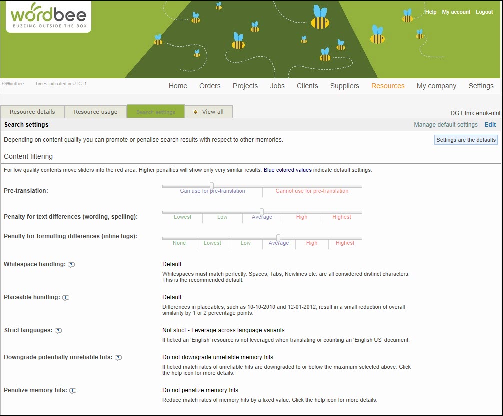 Translation memory - Default search settings