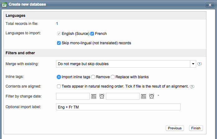 Next, choose to import a new Translation Memory or Terminology Database and then click on Next.