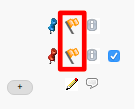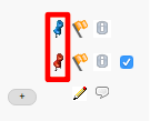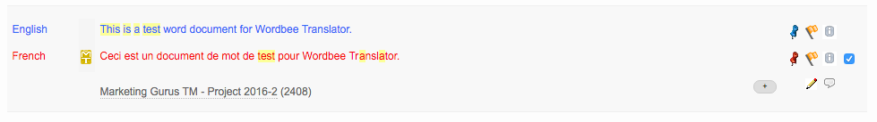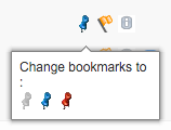 To change a bookmark, click on the Push Pin Icon and then choose a color. An icon will be present for the source text and each corresponding target translation.