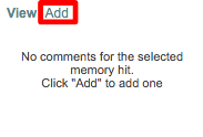 To see any existing comments for a search result, click on the Text Bubble Icon located below the Information Icons. This will open a pop-up window that displays existing comments and can be used to add your own comments. Click on Add to enter a new comment for the search result.