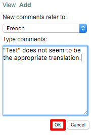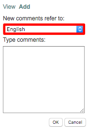 Use the New comments refer to drop-down menu to choose the language the comment should be left for and then click on the Type Comments section to enter your comment. Click on OK once the comment has been entered or Cancel to exit.