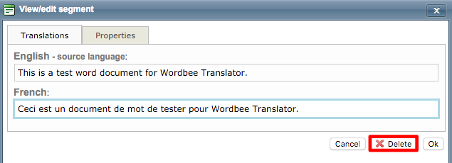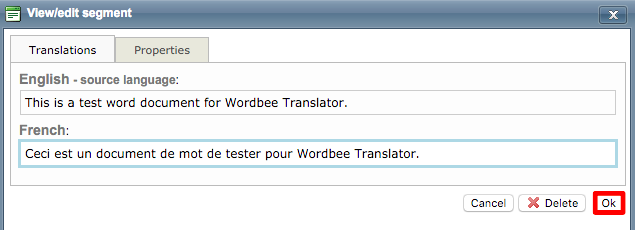 In the pop-up window, you are able to make changes to the source or target language. Once finished, click on Ok to save the change or Cancel to exit without saving the change.
