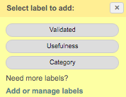 The Plus Icon can be used to add a label to a search result. You can use an existing label or create your own (if permitted). To select an existing label, click on it's name. To add your own, click on Add or Manage Labels.