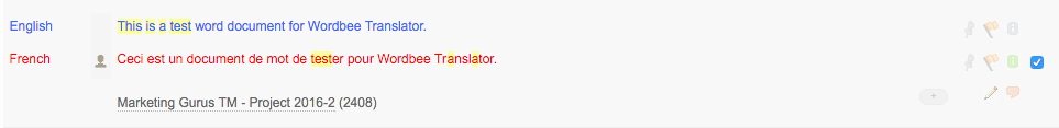 To the right of each result, you will see several icons, which can be used to add comments, make suggestions, and correct translations.
