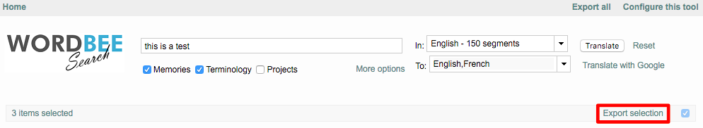 Then click on the Export Selection option located above the search results on the right side of the screen.
