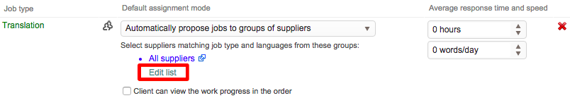 You will see the supplier group information change after clicking on OK. For this example, the supplier group has been changed to My Translators and any supplier in this group will receive an automatic job proposal.